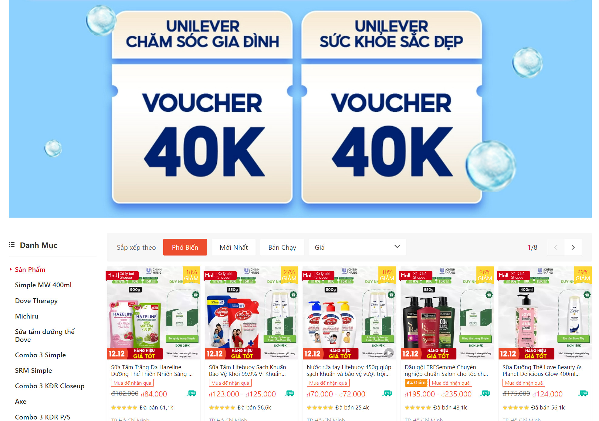 Unilever là cái tên không thể quen thuộc hơn trong ngành hàng tiêu dùng nhanh. Siêu hội 12.12 tới đây, ông lớn này cũng tỏ ra không hề kém cạnh với bất cứ thương hiệu nào khi tung deal to tới 50% cho hàng loạt nhãn con như Vaseline, P/S, Clear, Dove.. Tới Unilever chắc chắn bạn sẽ chọn được các sản phẩm ưng ý với giá hời đó nên nhanh tay nhé.