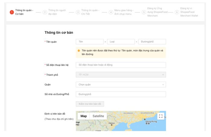 Ở phần đăng ký này bạn phải điền những thông tin cơ bản trong biểu mẫu mà ShopeeFood yêu cầu để có thể tiến hành đăng ký thông tin quán. Các thông tin cơ bản ấy như sau:
