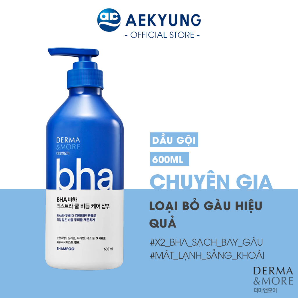 2.3. Dầu gội sạch gàu hết ngứa Derma & More BHA EXTRA COOL chiết xuất tinh dầu bạc hà mát lạnh, làm sạch sâu cho da đầu 600m