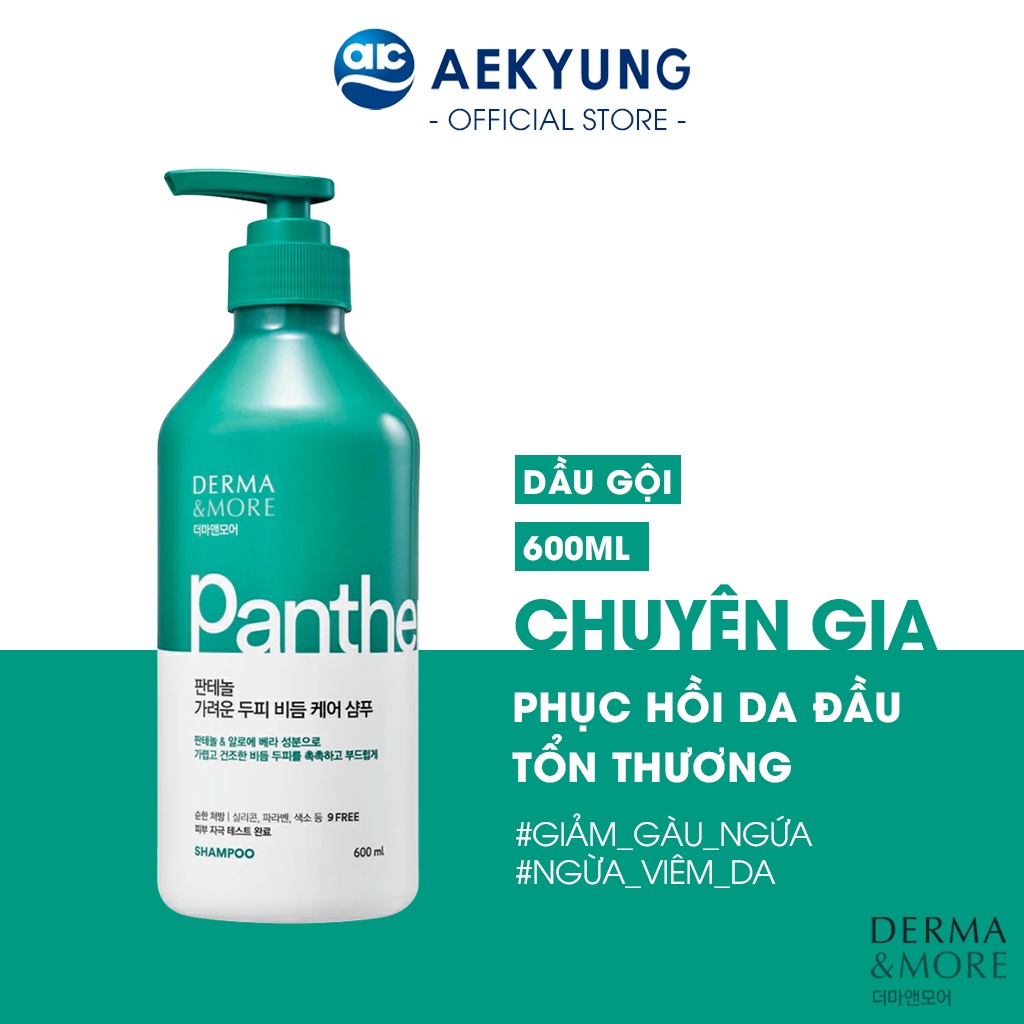 2.4. Dầu gội đầu giảm gàu ngứa Derma & More PANTHENOL ngừa viêm da, cấp ẩm, tái tạo da đầu hiệu quả,chăm sóc da đầu khô 600ml