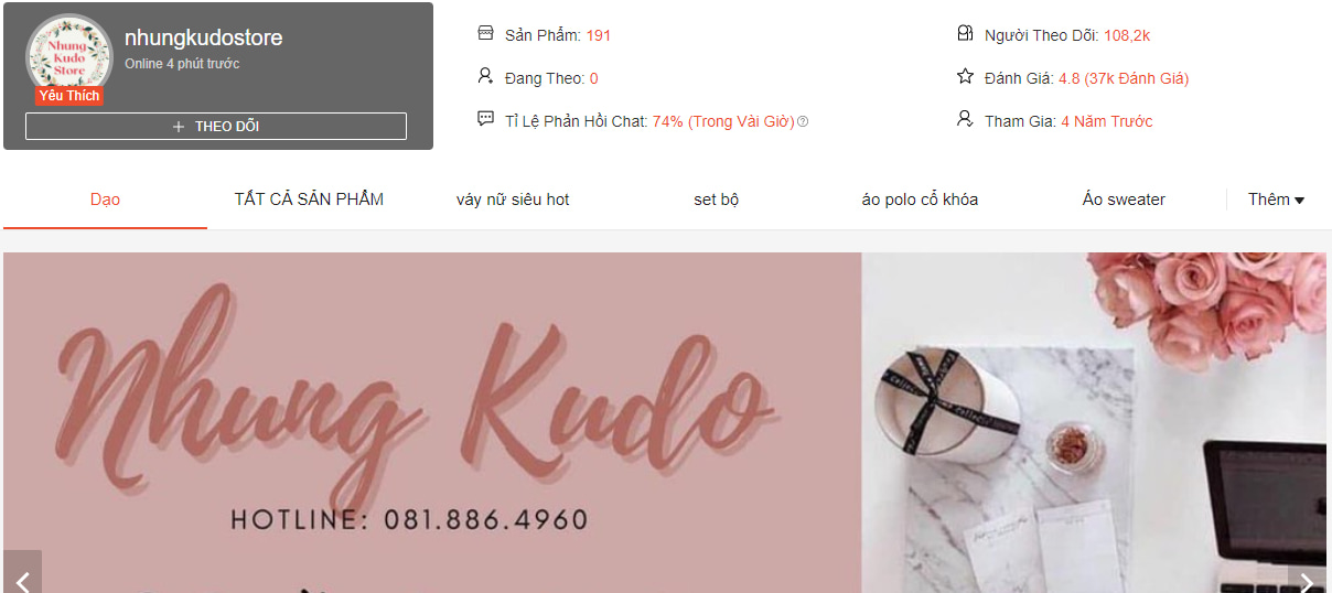 Đam mê tìm kiếm shop quần áo mùa hè thì nhất định không được bỏ qua Nhungkudostore đâu nhé. Với lượng theo dõi gần 110k và 4.8/5* đánh giá thì chắc hẳn bạn cũng biết chất lượng phục vụ của shop như thế nào rồi. Không chỉ là shop Yêu thích trên Shopee mà còn là một địa điểm bán uy tín của nhiều bạn sinh viên nữa. Các mặt hàng của shop có giá thành siêu hạt dẻ và phù hợp với nhiều kiểu khách hàng.