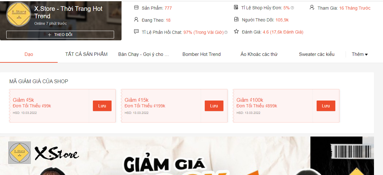 6. X.Store - Shop bán quần áo mùa hè hotrend trên Shopee