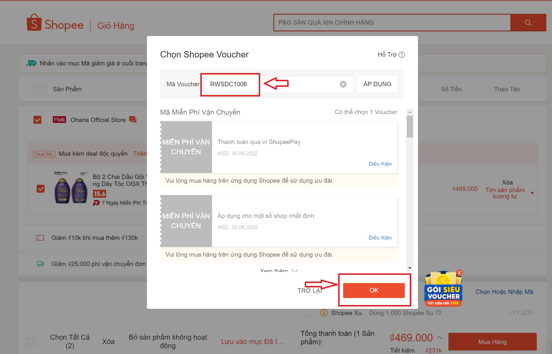 - Bước 3: Dán mã và thanh toán đơn hàng trên Shopee.