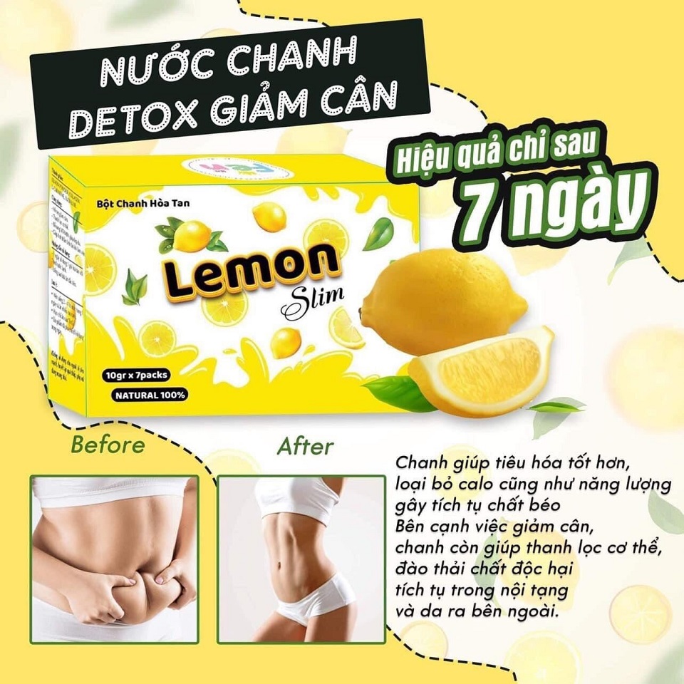 Detox Chanh Giảm Cân N Collagen - Hỗ trợ tăng cường chuyển hóa chất béo. Mỗi gói chứa: chiết xuất lá sen, nấm linh chi, chanh, kim ngân hoa, sâm đất, collagen type 1, phụ liệu,... Phù hợp với người trưởng thành thừa cân, béo phì, người muốn giảm béo. Lời khuyên là mỗi ngày nên uống ít nhất 2-3 lít nước. Hạn chế ăn nhiều dầu mỡ và tinh bột, ăn nhiều rau củ quả, kết hợp tập thể dục. Hạn chế đồ uống có ga và cồn.