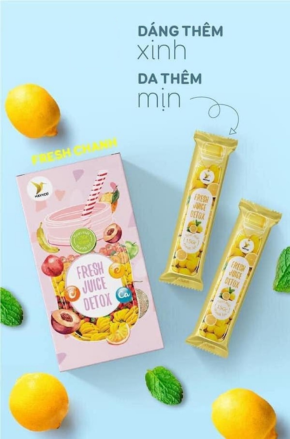 Detox giảm cân Havyco - fresh fruit hợp gồm 15 gói. Hộp 15 gói với 5 vị trái cây: đào, chanh, dâu, dưa, táo được làm từ đường mía nguyên chất thiên nhiên.