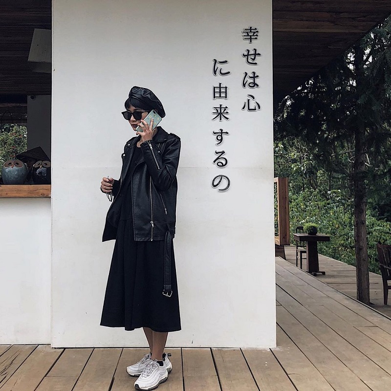 Nếu bạn không thuộc team những cô nàng bánh bèo thì đây chính là phong cách rất ư là phù hợp với bạn. Một chiếc áo da trơn màu đen vừa mang lại dáng vẻ khỏe khoắn vừa khiến bản thân thêm phần cá tính mà lại không quá hầm hố. Để kéo lại chút nữ tính vốn có thì bạn nên kết hợp với những chiếc váy liền, có thể là váy liền màu trơn hoặc có họa tiết hoa.
