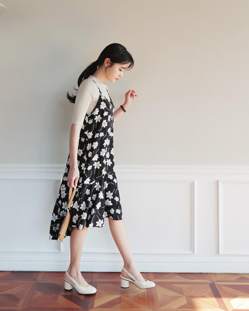 Chỉ cần một chiếc váy hai dây và áo dài tay sẽ đem đến cho bạn một phong cách phối đồ du lịch Đà Lạt rất nhẹ nhàng, nữ tính. Đơn giản là bạn chỉ cần mặc một chiếc váy dây hoa nhí hoặc là màu trơn quá gối ở bên ngoài chiếc áo thun tay dài là hoàn tất. Mặc dù sự kết hợp có phần đơn giản nhưng lại mang đến sự dễ thương và ngọt ngào cho mọi cô nàng.