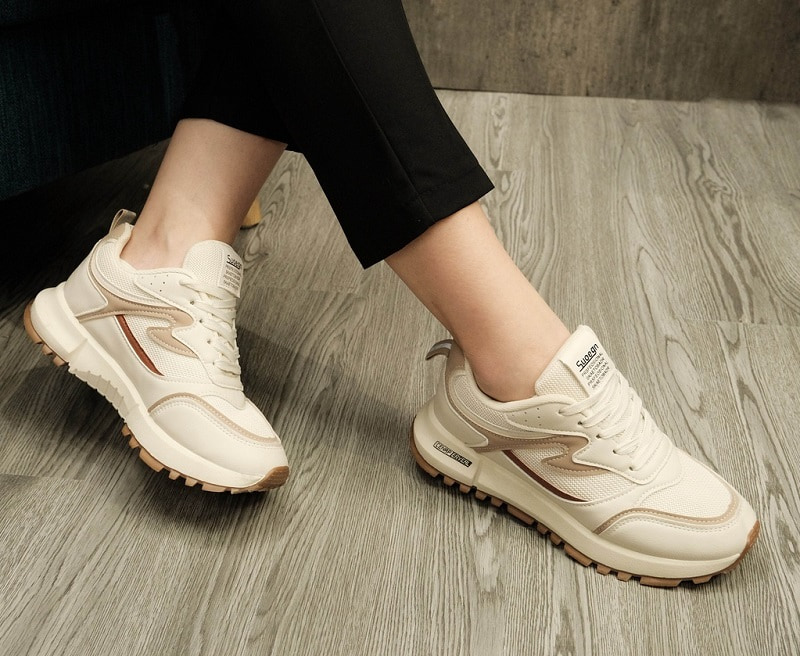 Đây là một hãng giày thể thao của Việt Nam sử dụng chất liệu không bong tróc kết hợp cùng sự phối màu be cao cấp nên nó luôn là mẫu giày hot trend phù hợp với những bạn trẻ. Kiểu dáng vô cùng sang trọng với đế giày có lực ma sát cao giúp bạn tránh được việc trơn trượt. Màu be có thể kết hợp với nhiều bộ trang phục mà không lo bị lạc tông, dù đi chơi hay đi làm đều phù hợp.