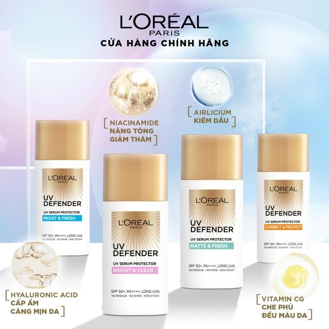 Kem chống nắng L’Oreal Paris UV Defender Serum - dòng sản phẩm được ra mắt từ thương hiệu đình đám L'Oreal Paris của Pháp. Kem không chỉ có tác dụng chống nắng mà còn cản nắng tối đa, ngăn ngừa lão hóa da.