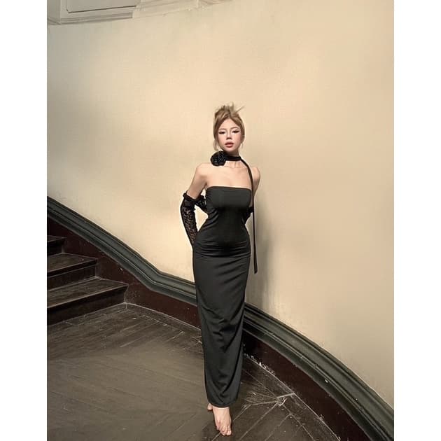 Brunette Dress - Đầm ống ôm dáng dài có thiết kế đơn giản nhưng không kém phần quyến rũ. Đối với những bạn nào cao m6 trở lên thì váy mặc sẽ gần tới đầu gối, mọi người nên mix cùng giày cao gót để trông trendy hơn. Đặc biệt, khi mua hàng, shop sẽ tặng riêng cho bạn 2 dây quấn và 1 bông hoa để làm phụ kiện.