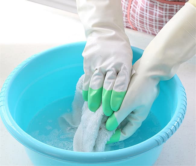 Bước 2: Ngâm trực tiếp quần áo khô vào dung tích nước tẩy vừa pha trên và ngâm trong vòng 3 - 4 giờ. Có thể ngâm lâu hơn nếu vết bẩn nhiều hoặc cứng đầu. Trong quá trình nên vò qua lại để các vết bẩn được đánh bay.