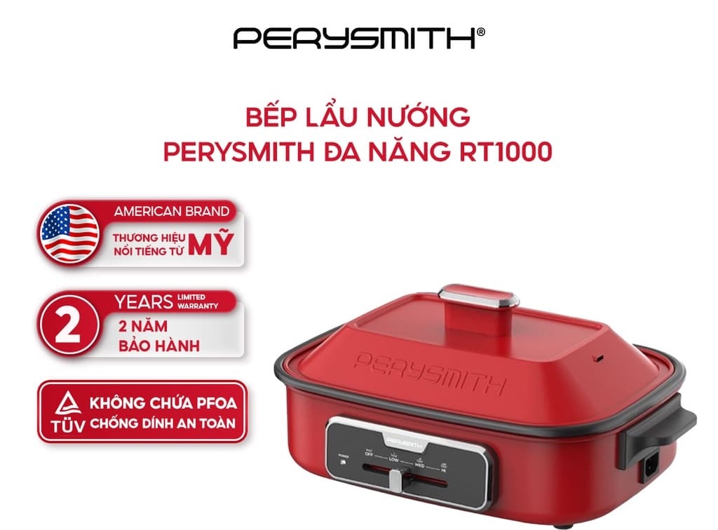 Bếp lẩu nướng đa năng PerySmith là sản phẩm bếp lẩu kết hợp với nướng, giúp bạn có thể vừa ăn lẩu vừa ăn nướng ngay trên cùng 1 bếp. Nồi có công suất 1400W, 3 chế độ nhiệt có thể điều khiển dễ dàng. Chất liệu được làm hoàn toàn từ vật liệu có khả năng chịu nhiệt, chịu lực nên rất bền, không sản sinh chất độc khi sử dụng.