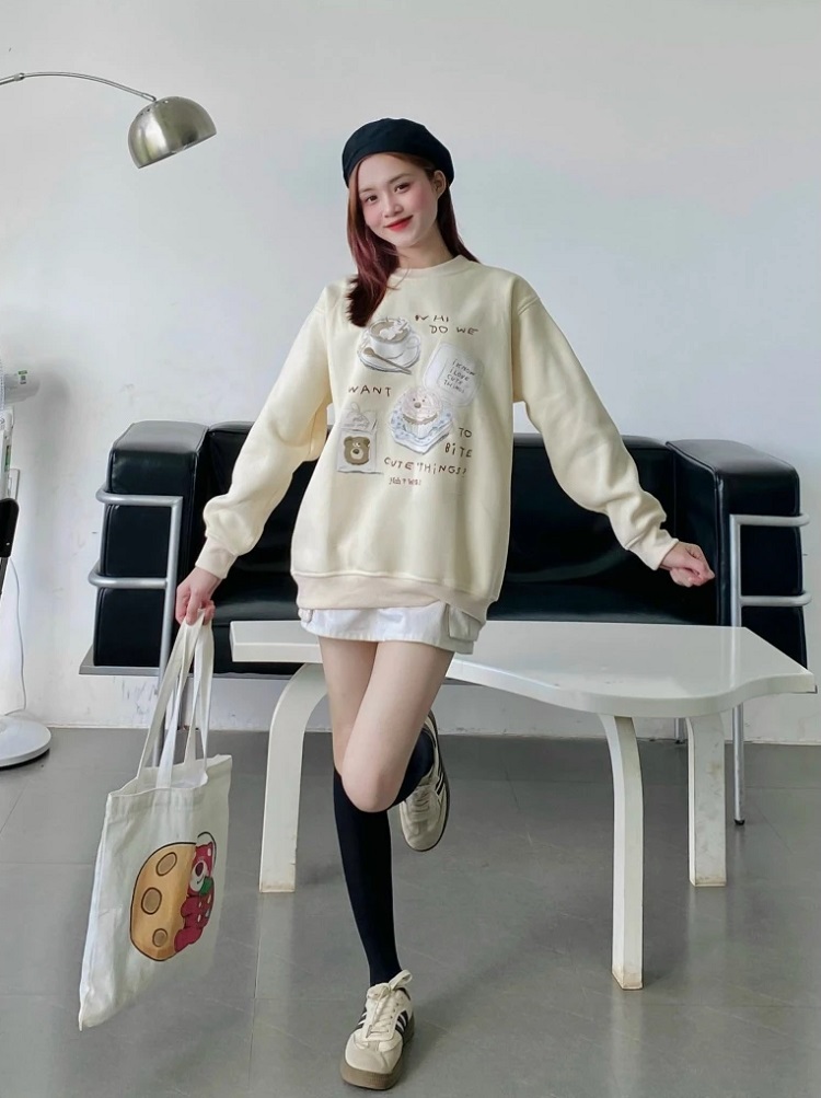 - Ưu điểm: Thiết kế form rộng thoải mái, họa tiết phong phú, dễ dàng mix&match với nhiều trang phục. Chất liệu nỉ bông mềm mại, ấm áp.