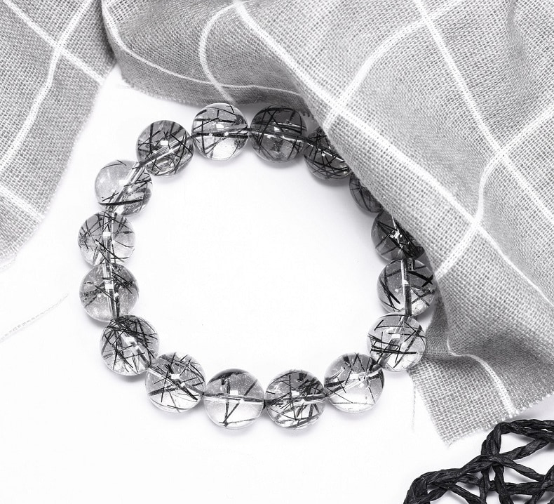 Vòng tay đá thạch anh tóc đen phù hợp cho người mệnh thủy và mộc có ý nghĩa giúp đem đến may mắn, bình an cũng như tài lộc cho người sử dụng. Kích thước của hạt là từ 11-13mm và dễ dàng vệ sinh vòng bằng vải mềm. Bạn sẽ được tặng kèm dây và kim xâu dự phòng khi mua sản phẩm trên Shopee.