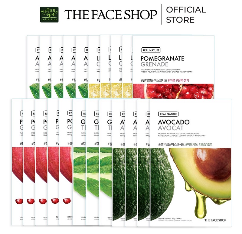 Mặt nạ TheFaceShop Real Nature có nhiều loại, mỗi loại có các thành phần chính như nha đam, chanh, lưu, trà xanh, bơ. Bạn có thể tin tưởng sử dụng mặt nạ TheFaceShop Real Nature vì đây là một trong những thương hiệu nổi tiếng tại Hàn Quốc được rất nhiều người sử dụng. Sản phẩm có công dụng cung cấp độ ẩm cho làn da, phục hồi da tươi trẻ, phục hồi màng ẩm bị tổn thương, ngăn ngừa tình trạng khô ráp ở da.