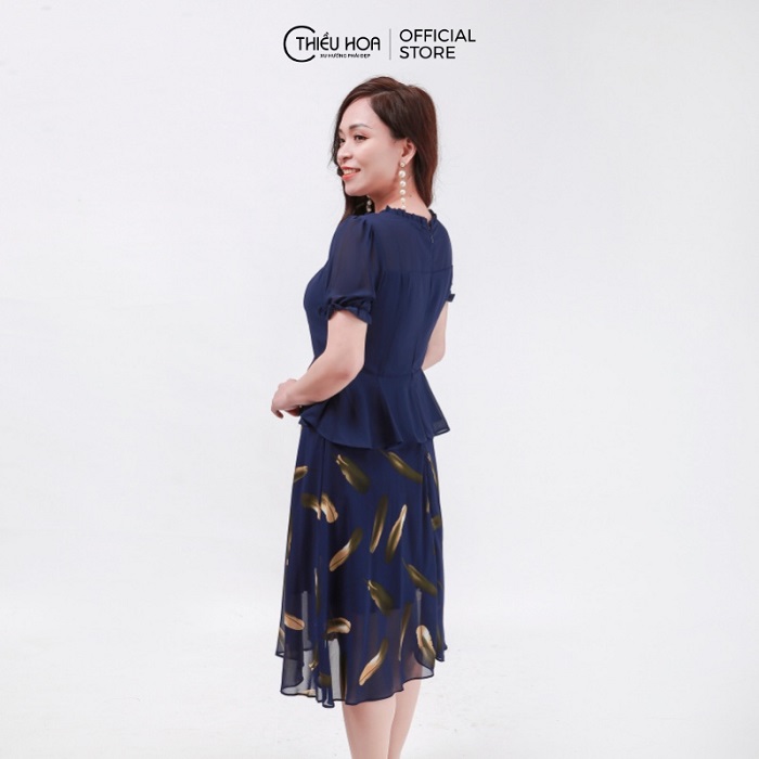 1.2. Đầm trung niên sang trọng, thiết kế tay ngắn, chất vải chiffon mềm mại thoáng mát thương hiệu Thiều Hoa P742