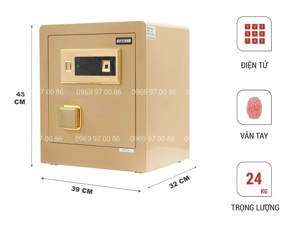 Chất liệu hợp kim thép đặc không gỉ, vẻ ngoài được quét sơn tĩnh điện đen bóng cao cấp và sang trọng. Bên trong chia thành 2 ngăn lưu trữ, với 4 khóa chốt bảo mật cực kỳ cao,chống cháy nổ, va đập, tác động từ bên ngoài nên bạn cứ an tâm sử dụng. Mở khóa cổ điển với bảng số mật mã kết hợp khóa khẩn cấp. Thiết kế tiện lợi giúp bạn có thể mang đi bất cứ đâu từ ở nhà, khách sạn, văn phòng,...