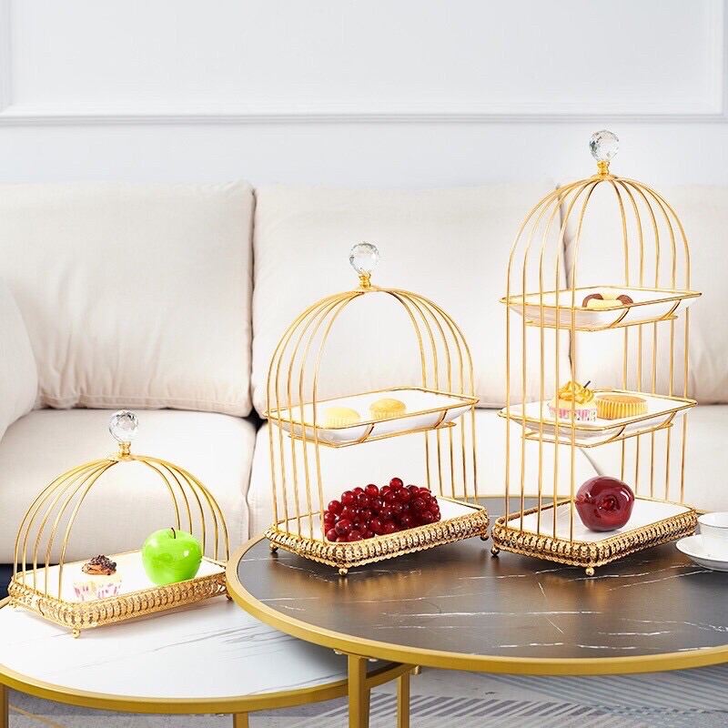 1. Khay kệ bánh kẹo hoa quả hình lồng chim trang trí