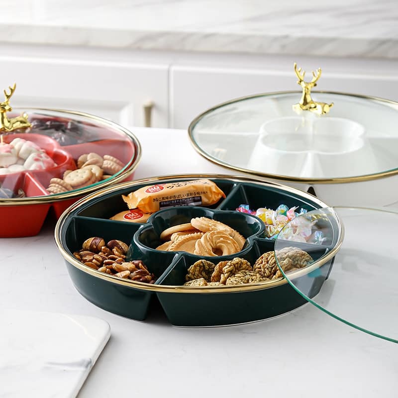2. Khay mứt tết, khay đựng bánh kẹo tết họa tiết đầu hươu sang trọng