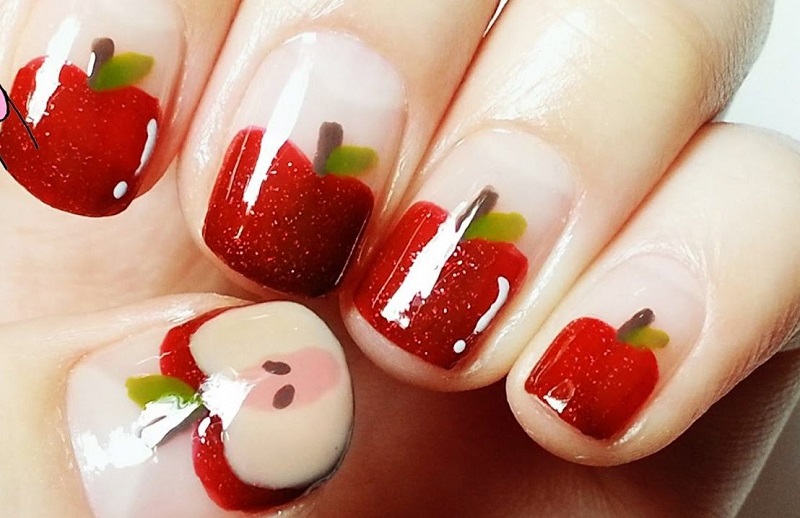 Bên cạnh hình ảnh chú cún hay hoạ tiết ngộ nghĩnh phía trên thì những loại trái cây khi làm mẫu móng cũng không kém phần mới lạ và hấp dẫn đấy nhé. Chị em cũng có thể kết hợp với nhiều loại trái cây cùng lúc để tạo nên sự thu hút và tươi trẻ hơn nữa. Bạn hãy sáng tạo theo ý thích của bản thân rồi tô điểm bằng một bộ móng tay cực đẹp cho ngày Tết thêm lung linh nhé.