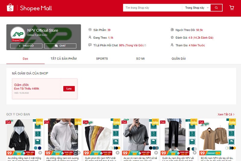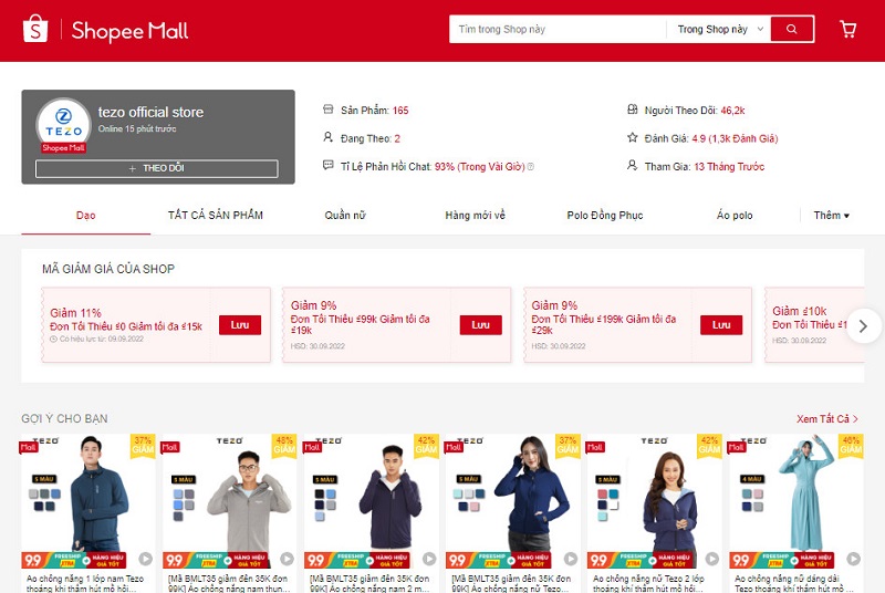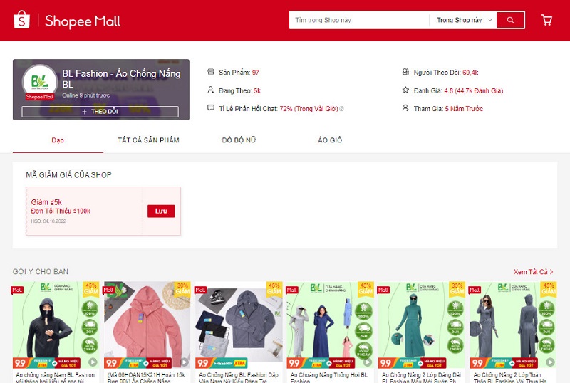 Shop bán các loại áo chống nắng cả của nam và nữ có chất lượng cực kì tốt. Số người theo dõi của Shop là 60,4k và điểm đánh giá của shop là 4.8 nên bạn có thể tin tưởng mua các sản phẩm bên đây nhé. Đặc biệt shop thuộc Shopee Mall nên các sản phẩm bên đây đều vô cùng đảm bảo chất lượng khi mua hàng cho bạn.
