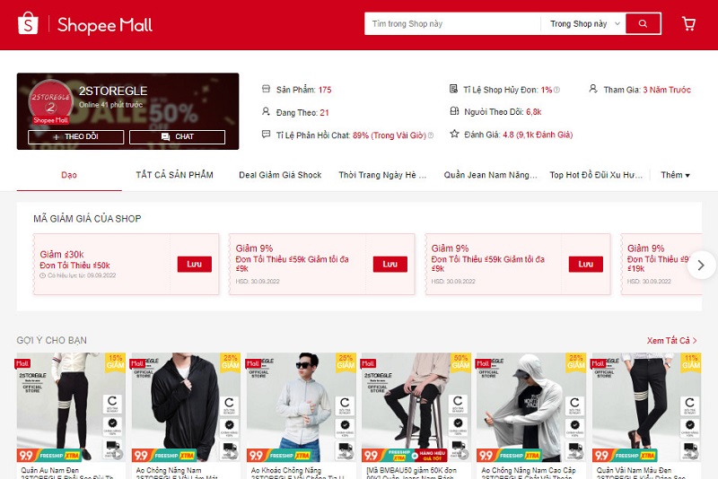 2STOREGLE là một shop bán áo chống nắng nam vô cùng chất lượng được thể hiện ngay ở việc tỉ lệ shop hủy đơn chỉ là 1%. Ngoài ra các sản phẩm của shop bán không chỉ là áo chống nắng mà còn là cả các sản phẩm quần áo khác nữa nên bạn có rất nhiều sự lựa chọn khi mua hàng ở đây. Bạn hoàn toàn có thể yên tâm khi mua hàng ở đây tại shop là một shop thuộc Shopee Mall đó.