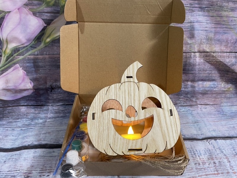 Đèn gỗ để bàn được làm từ chất liệu gỗ dày 3 ly và có kích thước là 15cm. Bạn có thể tô màu cho chiếc đèn gỗ theo sở thích của bạn. Sản phẩm rất bám màu, có thể tô bằng màu sáp, màu lông,… nhưng tô đẹp nhất là màu acrylic. Đèn gỗ còn có một chiếc đèn nhỏ bên trong tạo cho người dùng cảm giác đúng chất mùa Halloween.