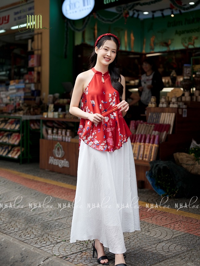 Một trong những lựa chọn ấn tượng dành cho mọi dáng người trong dịp Tết là set áo váy yếm lụa. Với chất liệu lụa mềm mại, set áo váy này không chỉ tôn lên vẻ trang nhã mà còn tạo nên sự thanh lịch và quyến rũ. Thiết kế yếm tinh tế giúp che đi những khuyết điểm về dáng vóc, đồng thời tạo điểm nhấn ấn tượng cho trang phục Tết.