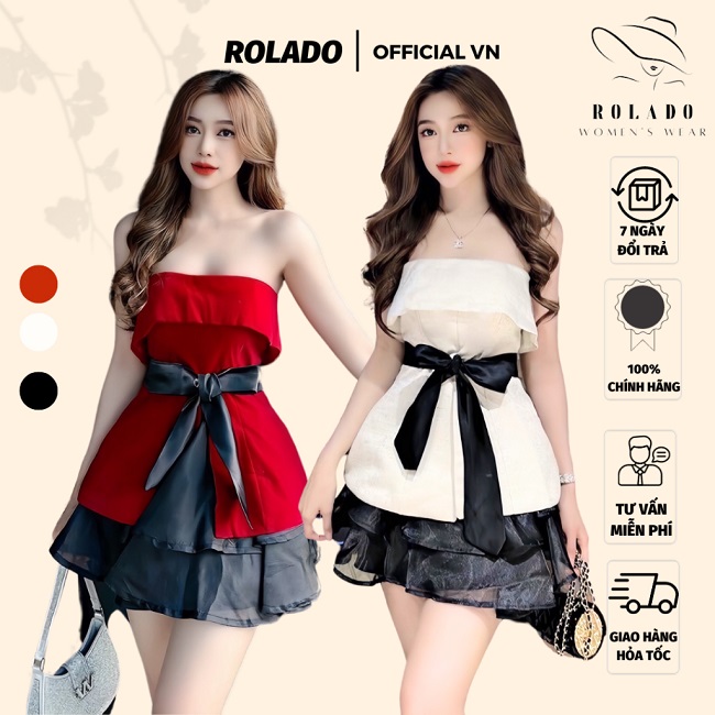 - Set chân váy tiểu thư và áo ống cúp ngực phối nơ