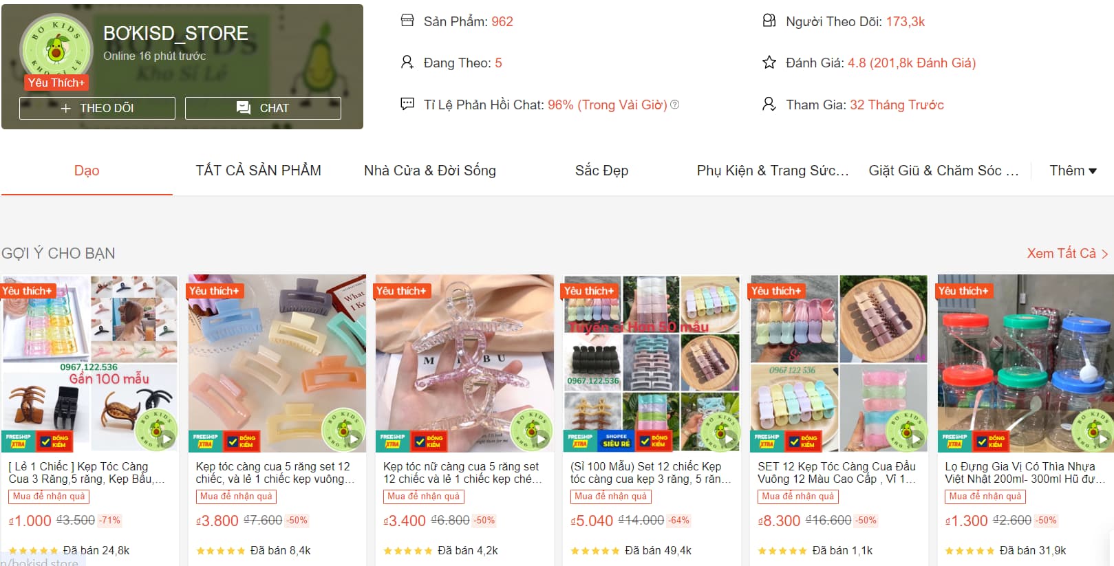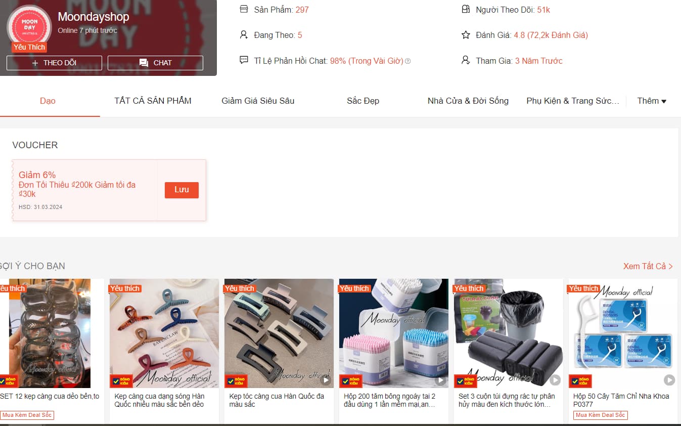 Shop bán kẹp tóc càng cua Moondayshop với rất nhiều mẫu kẹp tóc càng cua xinh, đa dạng mẫu mã, giá thành thì học sinh sinh viên nên được rất nhiều người yêu thích. Bên cạnh các mẫu phụ kiện tóc, shop còn bán hàng bách hóa tổng hợp, mọi người có thể ghé thăm nha.