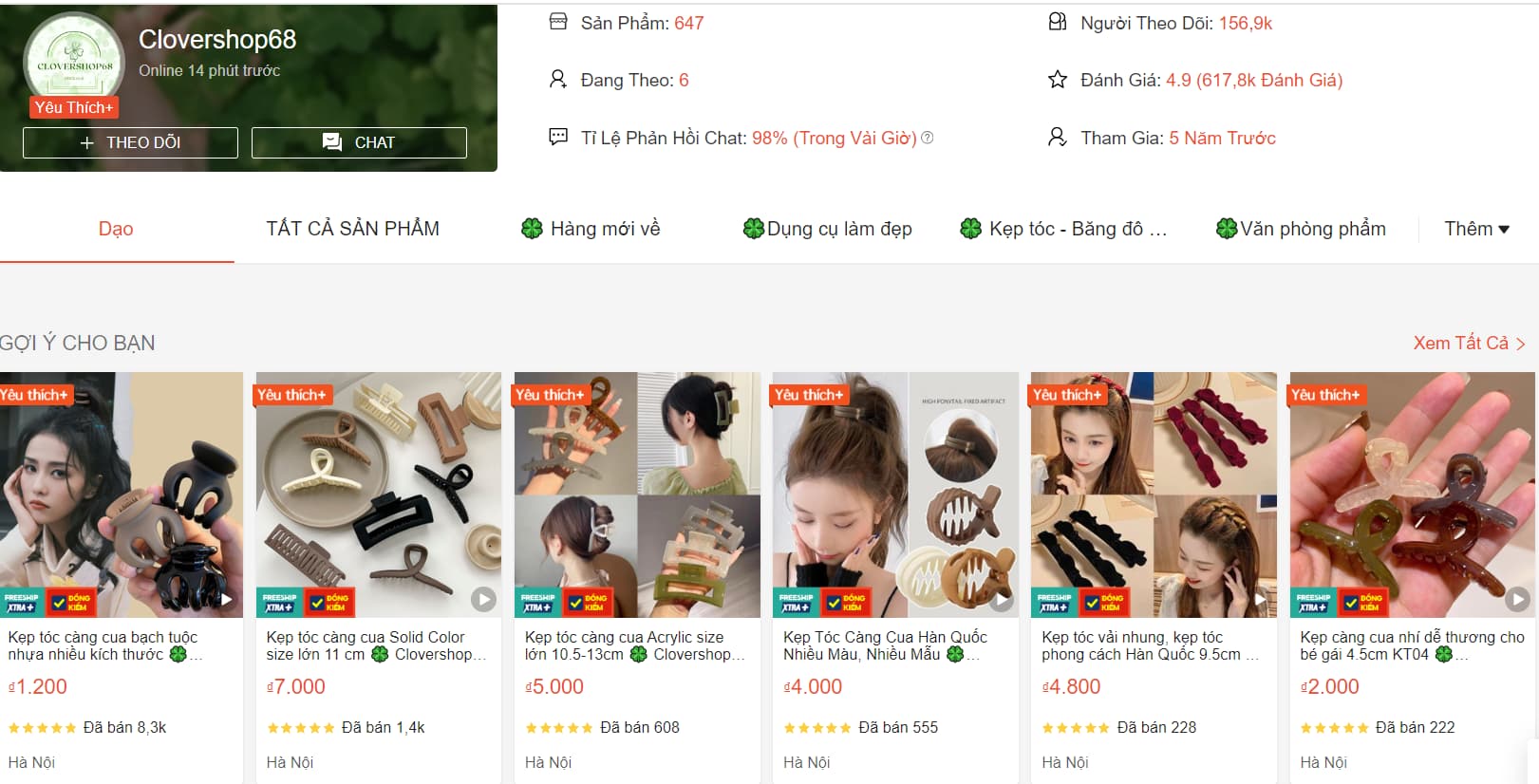 Shop bán kẹp tóc càng cua Clovershop68 là shop uy tín bán kẹp càng cua trên Shopee mà bạn có thể lưu lại. Tại đây, bạn sẽ tìm thấy những mẫu kẹp tóc độc lạ nhưng không kém phần đẹp mắt mà giá lại còn rẻ nữa. Đặc biệt, các mẫu kẹp càng cua Hàn Quốc của shop cũng được update liên tục, giúp người dùng có thêm nhiều sự lựa chọn.