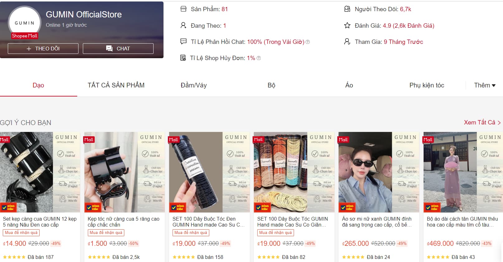 Shop bán kẹp tóc càng cua Gumin Official Store là thương hiệu thời trang tóc được yêu thích nhất trong năm vừa qua. Tại đây có rất nhiều phụ kiện kẹp càng cua cute mà bạn có thể sắm để F5 cho mái tóc của mình.