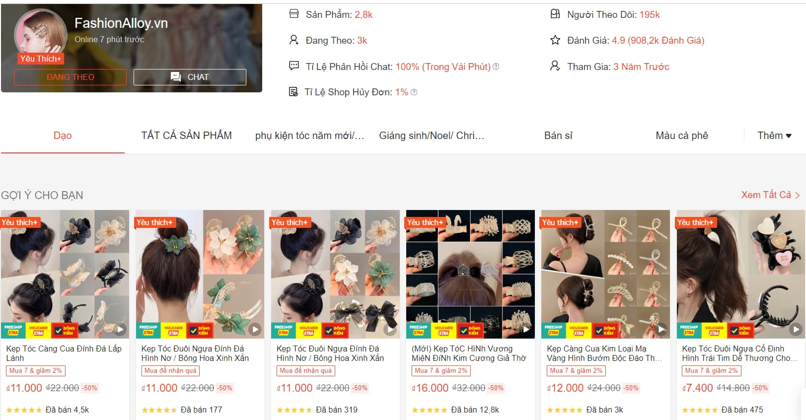 TOP 9 Shop bán kẹp tóc càng cua theo phong cách Hàn Quốc giá rẻ nhưng chất lượng trên Shopee