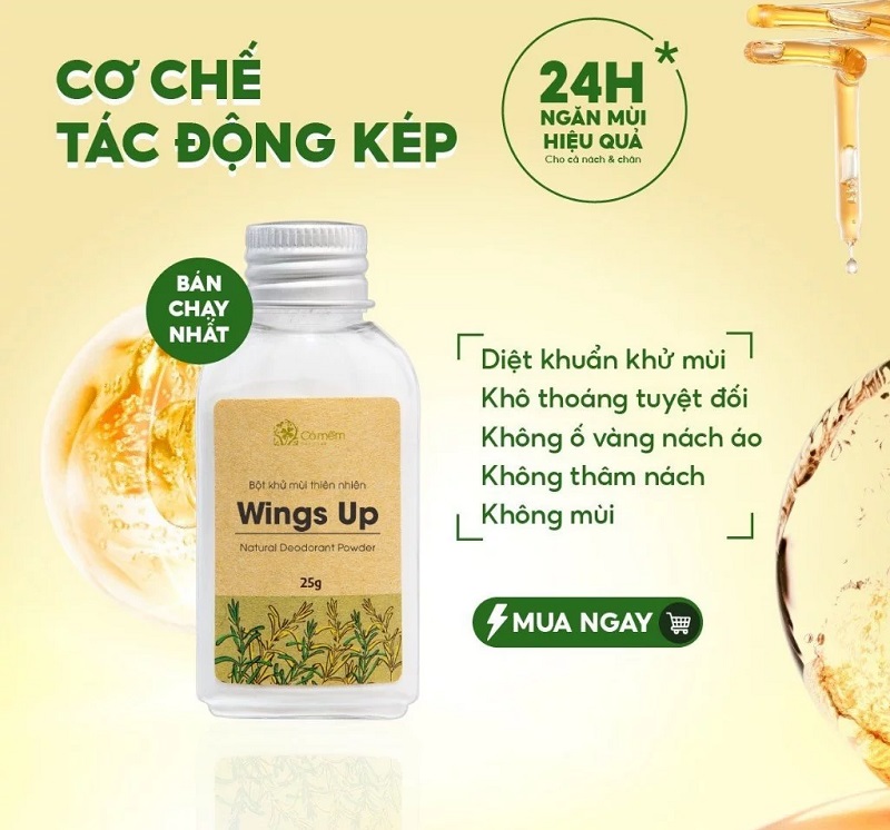 Bột khử mùi Wings Up là sản phẩm dạng bột giúp khử mùi hôi chân hiệu quả, được chiết xuất từ thiên nhiên với công thức đặc biệt, phù hợp cho những ai thường xuyên phải mang giày.