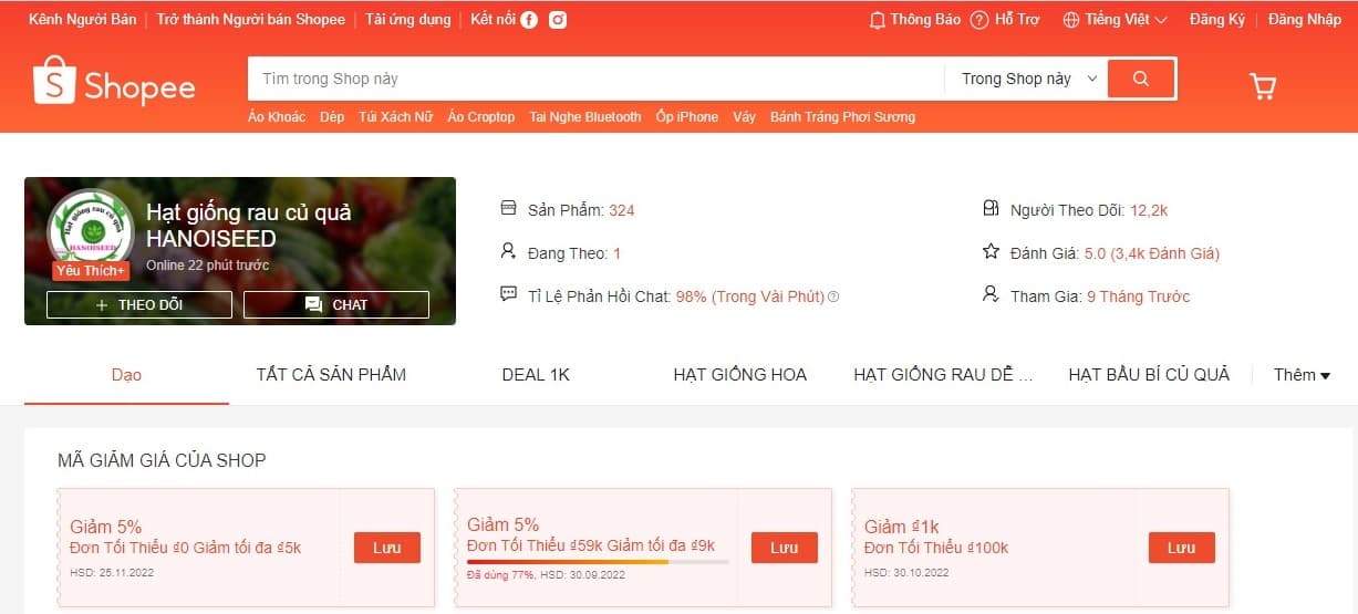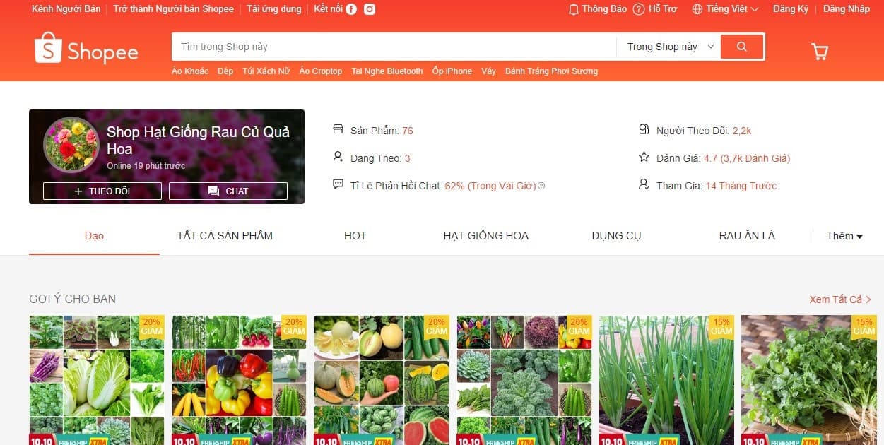 Shop hạt giống rau củ quả hoa tham gia Shopee dù chỉ 14 tháng trước nhưng là địa chỉ quen thuộc của nhiều khách hàng. Shop sở hữu 2,2 k lượt theo dõi, 4,7 ( 3,7 k đánh giá), tỉ lệ phản hồi chát 62 % trong vài giờ…