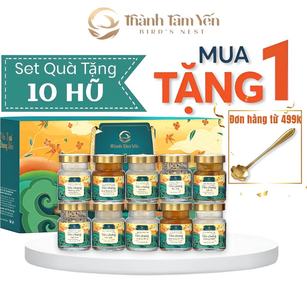 - Hộp quà 10 hũ Yến chưng sẵn đủ vị Thành Tâm Yến
