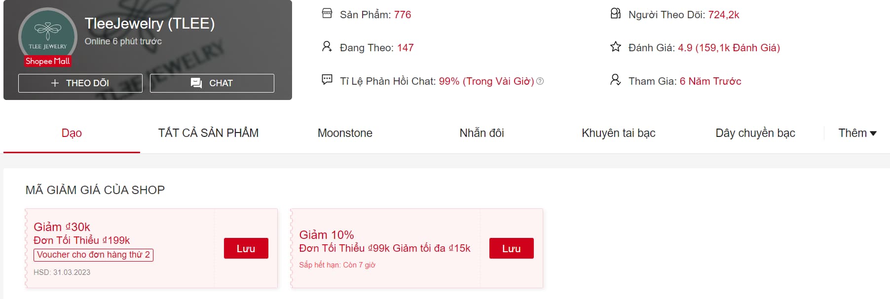 Shop TleeJewelry (TLEE) là địa chỉ uy tín, chất lượng cho các bạn tham khảo khi muốn mua trang sức bạc. Tại shop có các dòng lắc tay, nhẫn, dây chuyền, lắc chân, bông tai bằng bạc rất cao cấp và sang trọng. Các sản phẩm của shop cũng có lượt bán lên đến vài chục nghìn nên mọi người cứ an tâm nha.