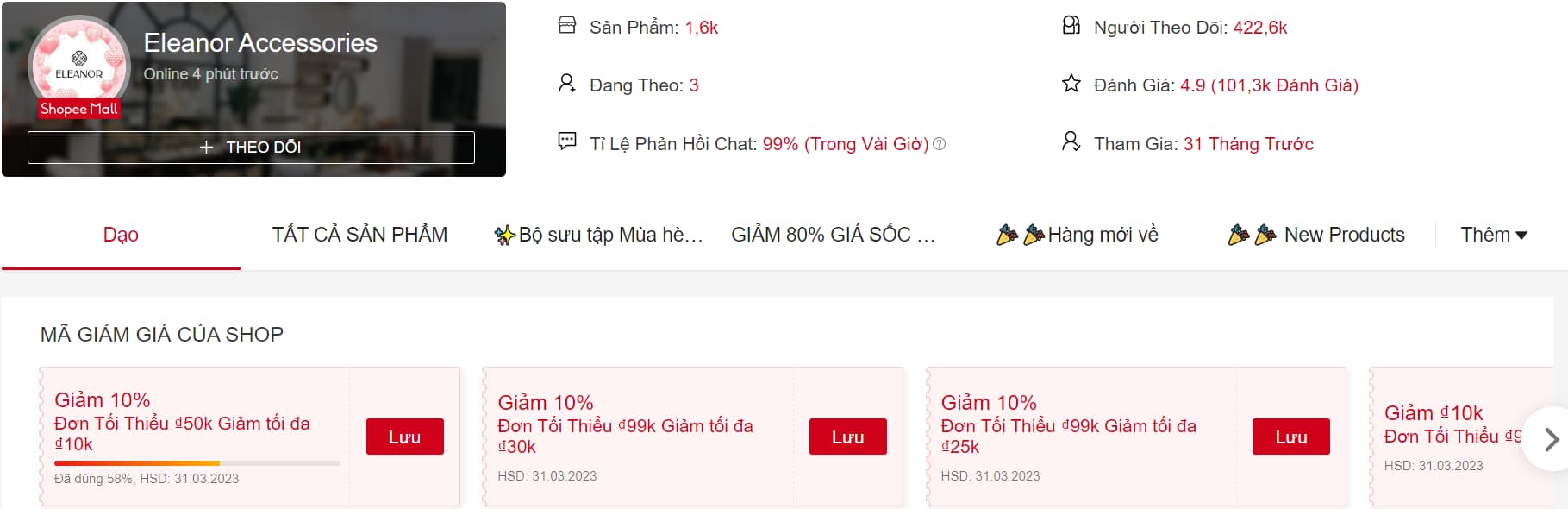 Shop Eleanor Accessories là địa chỉ bán trang sức bạc được nhiều người yêu thích. Shop rất hay có các chương trình giảm giá, khuyến mại nên được nhiều người ghé thăm. Hiện, shop đang kinh doanh các mặt hàng trang sức bạc như dây chuyền, bông tai, nhẫn, mặt đá dây chuyền, lắc chân...