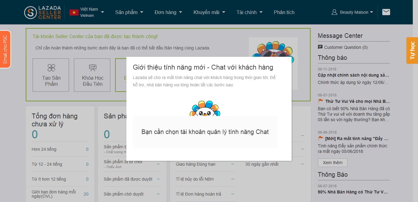 Tiếp đó, bạn ấn nút Xác nhận => bạn được chuyển tới mục Lazada Seller Center.
