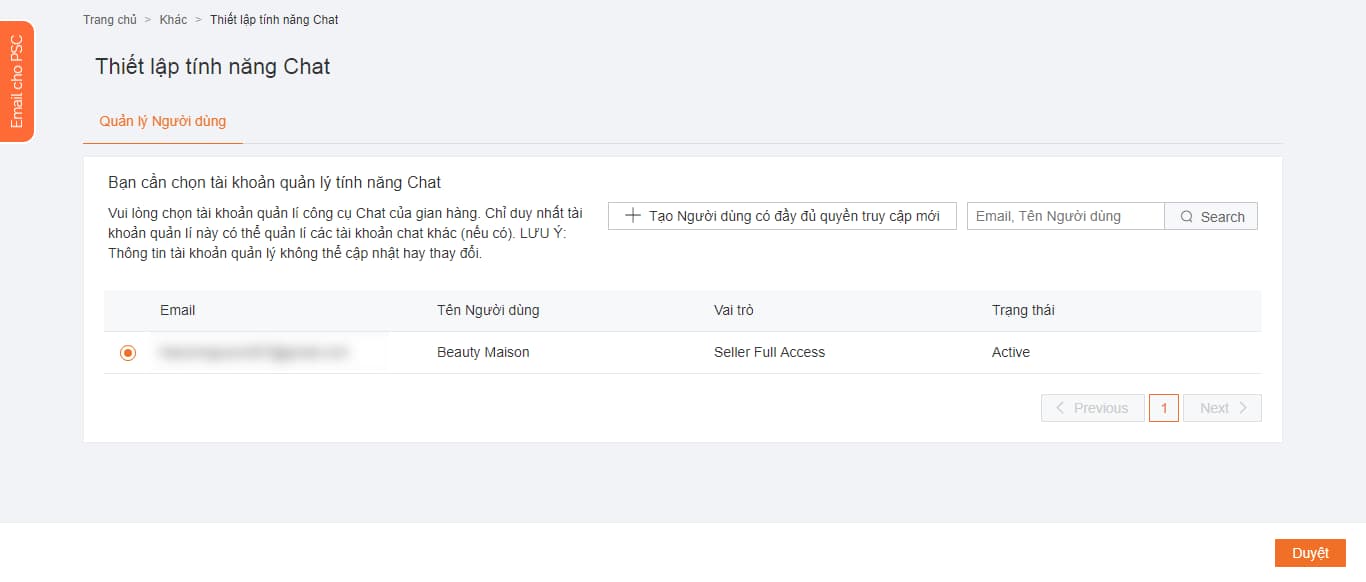 Đến đây, Lazada sẽ yêu cầu bạn chọn tài khoản quản lý tính năng Chat.