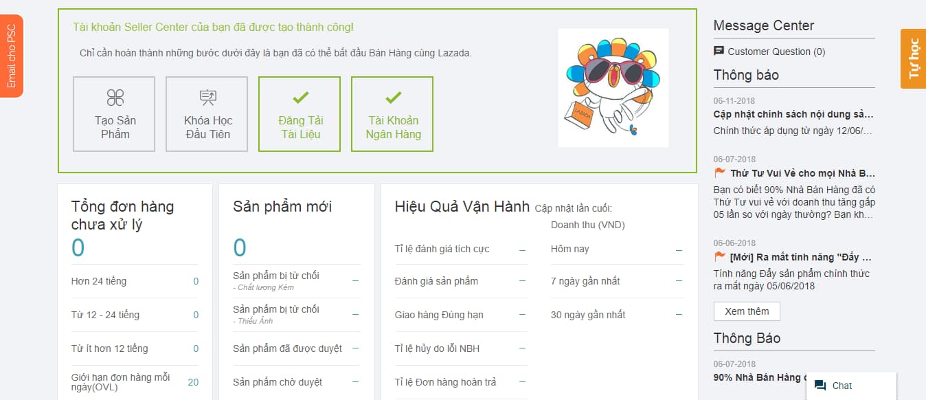 Như vậy là bạn đã hoàn thành việc đăng ký mở gian hàng trên Lazada. Tuy nhiên, lúc này gian hàng của bạn vẫn sẽ chưa được kích hoạt. Để có thể bán hàng trên Lazada, bạn cần thực hiện 1 số bước tiếp theo dưới đây.
