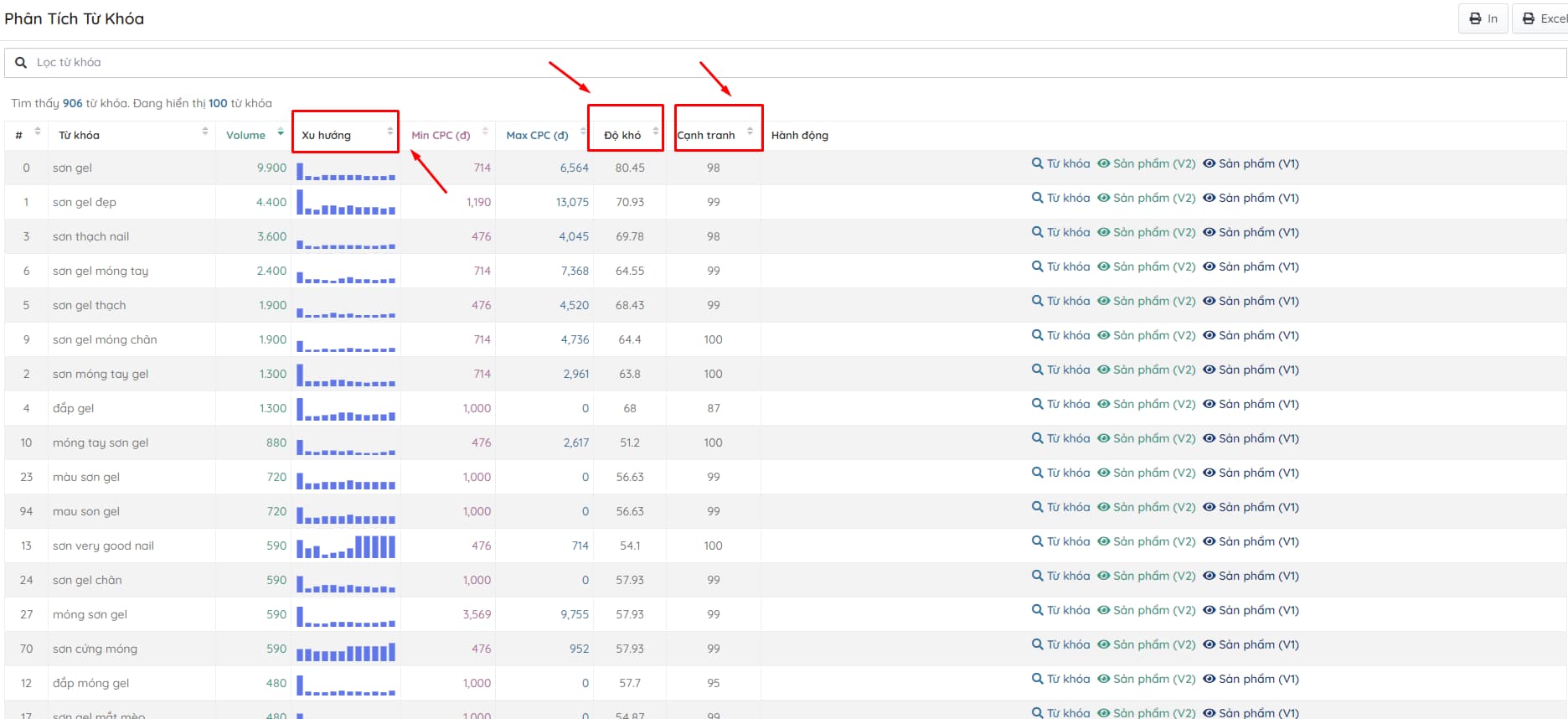 Một ví dụ về phân tích từ khoá "sơn gel"