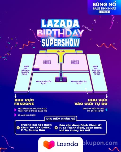 Lazada Birthday Supershow chia thành ba khu vực: sân khấu, khu vực fanzone và khu vực vào cửa tự do (vào cửa miễn phí cho tất cả mọi người)