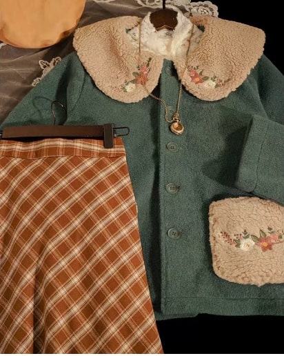 3.6. Set áo khoác len mix chân váy kẻ caro phong cách Morigirl vintage
