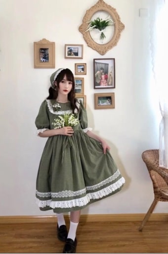 Nếu là tín đồ Mori Girl chắc chắn bạn phải sở hữu em váy viền ren siêu xinh này nhé. Váy được thiết kế dáng xòe theo phong cách Morigirl vô cùng dễ thương nhưng không kém phần nữ tính. Màu xanh lục trang nhã điểm ren trắng phần chân váy, ngực và cổ tay sẽ khiến bạn trở nên dịu dàng như một đóa hoa.
