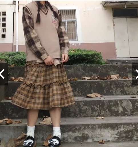 3.3. Váy kẻ caro phong cách Mori girl Nhật