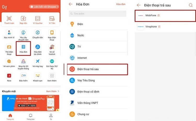 Hướng dẫn thanh toán hóa đơn di động trả sau trên Shopee