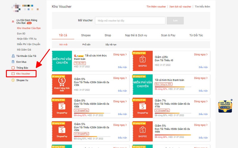 Cách tìm Voucher Shopee bạn cần làm các bước sau: