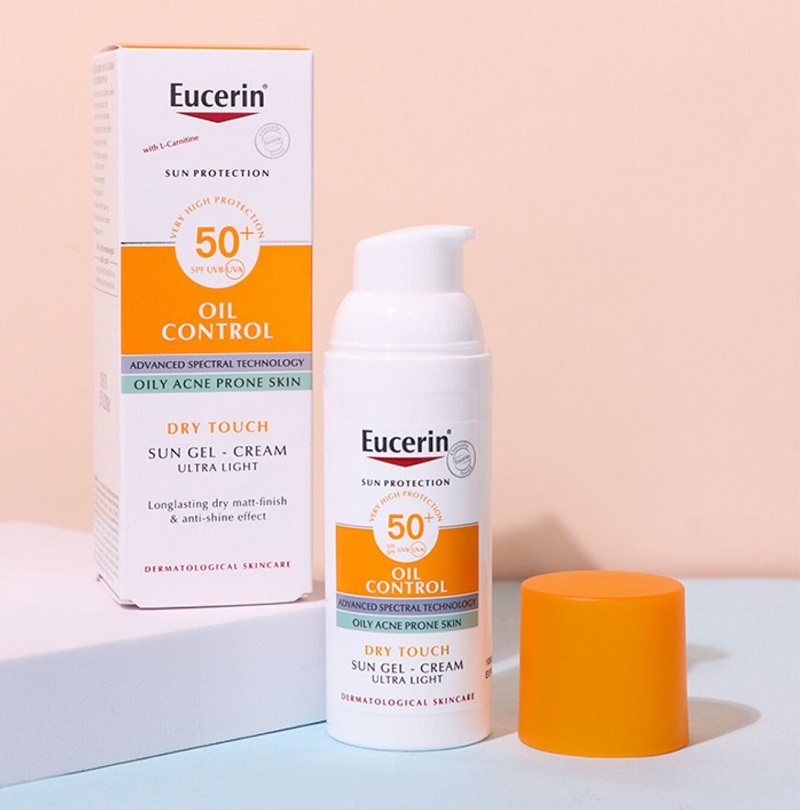 Kem chống nắng cho da nhờn mụn Eucerin Sun Gel-Cream Dry Touch Oil Control SPF50+ là loại kem chống nắng kiểm soát nhờn, giảm và ngăn ngừa mụn cho da. Sản phẩm bảo vệ tối ưu cho da trong quá trình điều trị, hạn chế các vết thâm và các vết mụn. Sản phẩm có kết cấu mỏng nhẹ, hấp thụ cực nhanh, giảm bóng dầu và kiểm soát bã nhờn trong suốt 8 giờ đồng hồ.