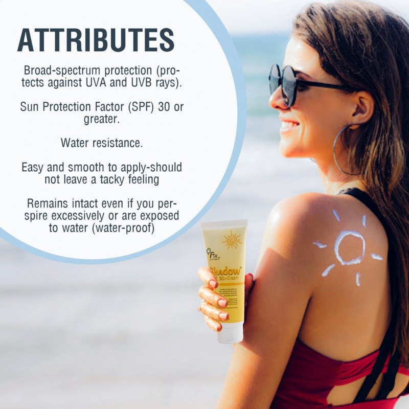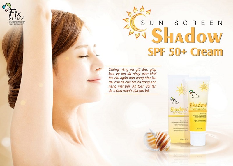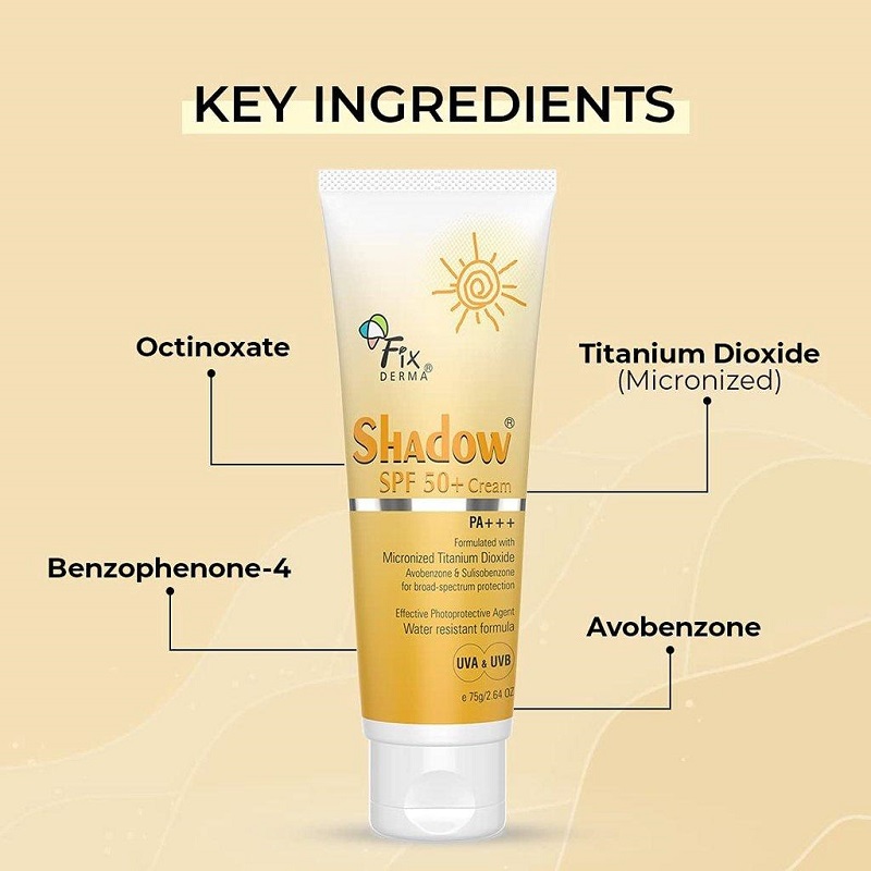Kem chống nắng Fixderma Shadow SPF 50+ dạng cream là dòng sản phẩm giúp bảo vệ da vô cùng tốt kể cả làn da nhạy cảm nhất khỏi tia cực tím của mặt trời. Thành phần chính của sản phẩm gồm Octinoxate, Benzophenone-4 giúp hấp thụ tác hại của tia UV… do đó sản phẩm có thể bảo vệ da khỏi 98% ánh nắng mặt trời.